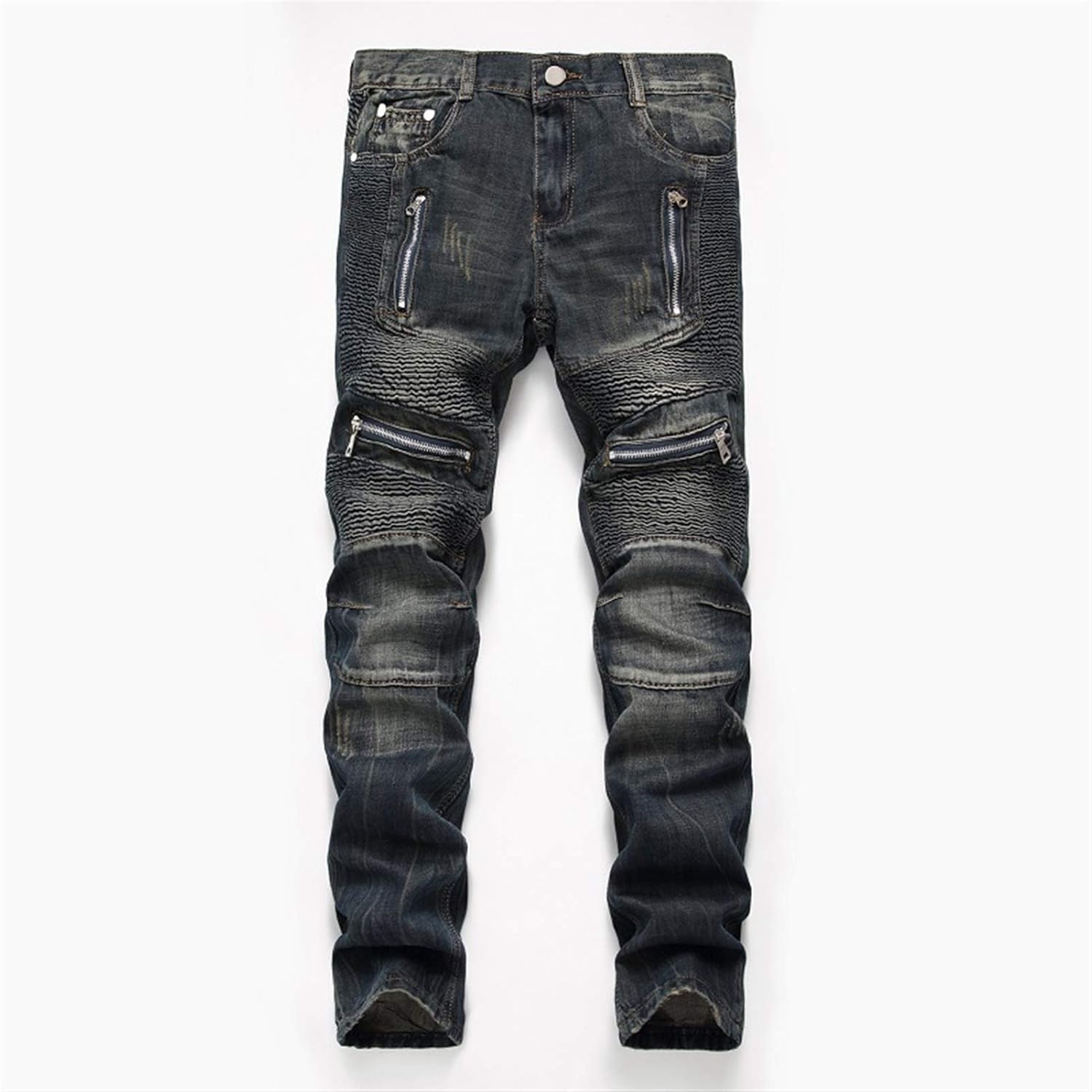ファッション通販 メンズストレートジーンズ秋春パンクロックストリートウェアロングパンツスリムフィット足 Size 32